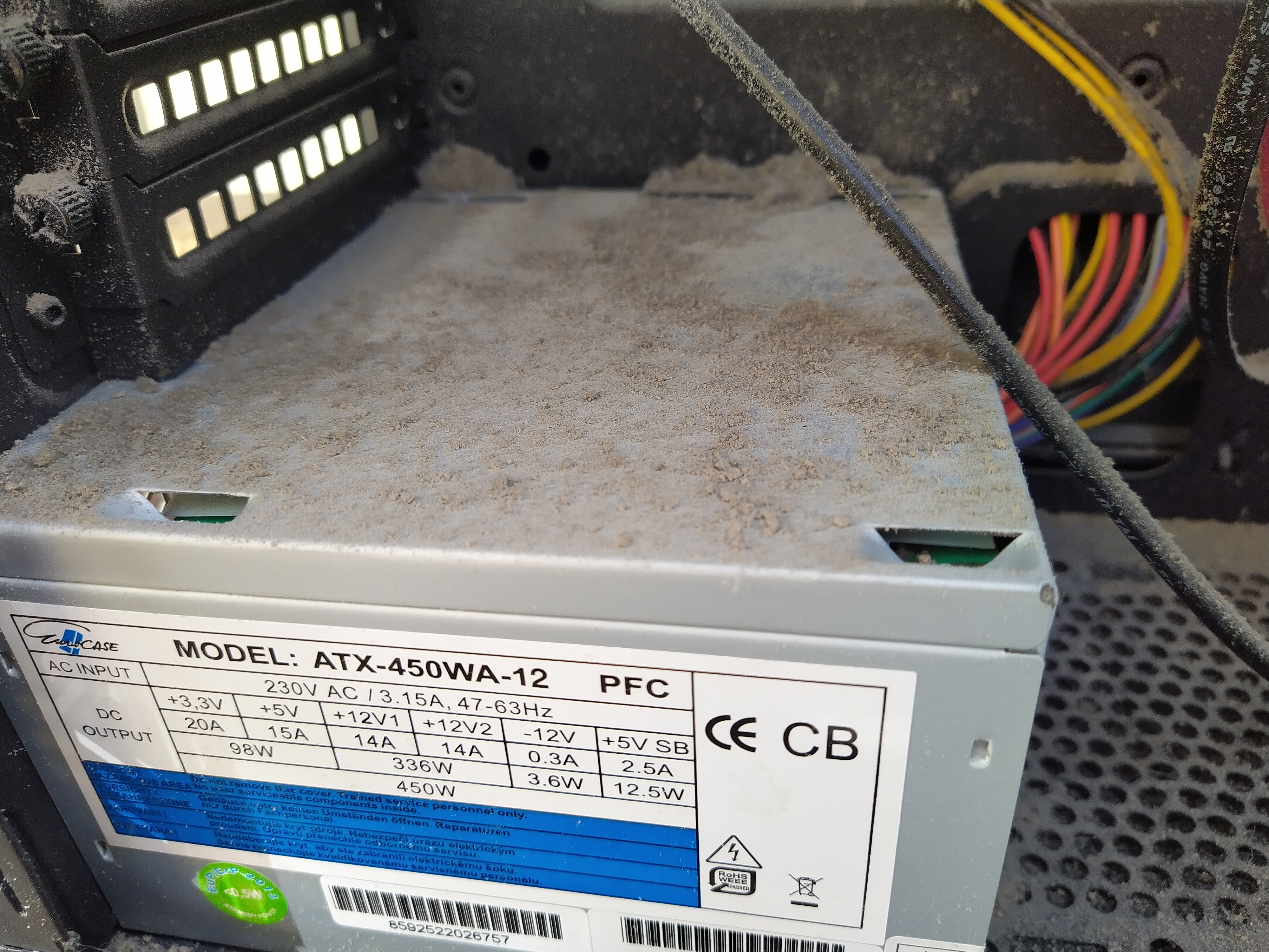 Počítač jsem musel nejprve zbavit nánosů prachu. Kromě příjemnější práce pro mě to má i svoje technické důvody. Prach je totiž zabiják elektroniky. Jediný důvod, proč elektronika odchází je teplotní namáhání. Deska plošných spojů se s rostoucím teplem roztahuje, a když chladne tak se zase smršťuje. Tepelná dilatace. No a jednou se nějaký spoj přeruší, a porucha je na světě.