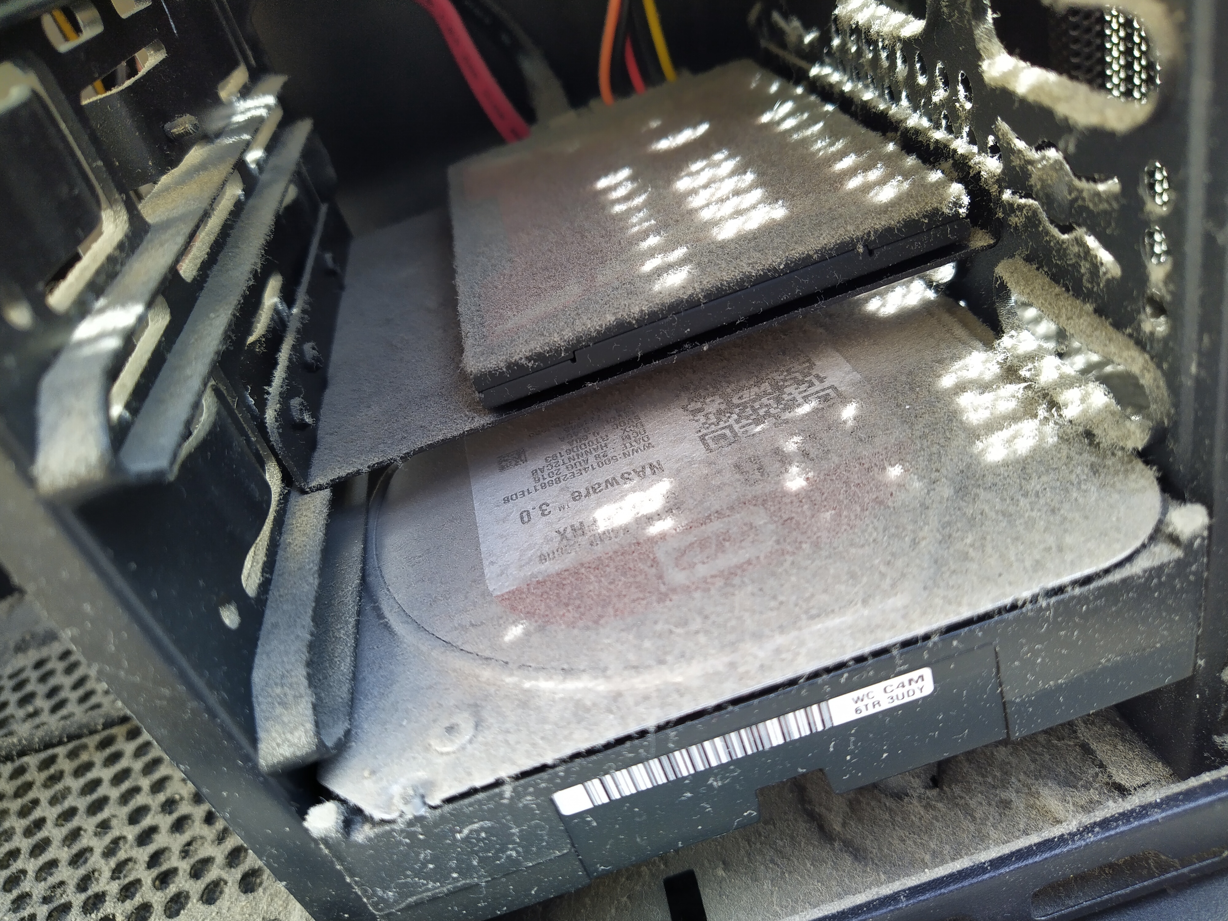 Počítač jsem musel nejprve zbavit nánosů prachu. Kromě příjemnější práce pro mě to má i svoje technické důvody. Prach je totiž zabiják elektroniky. Jediný důvod, proč elektronika odchází je teplotní namáhání. Deska plošných spojů se s rostoucím teplem roztahuje, a když chladne tak se zase smršťuje. Tepelná dilatace. No a jednou se nějaký spoj přeruší, a porucha je na světě.