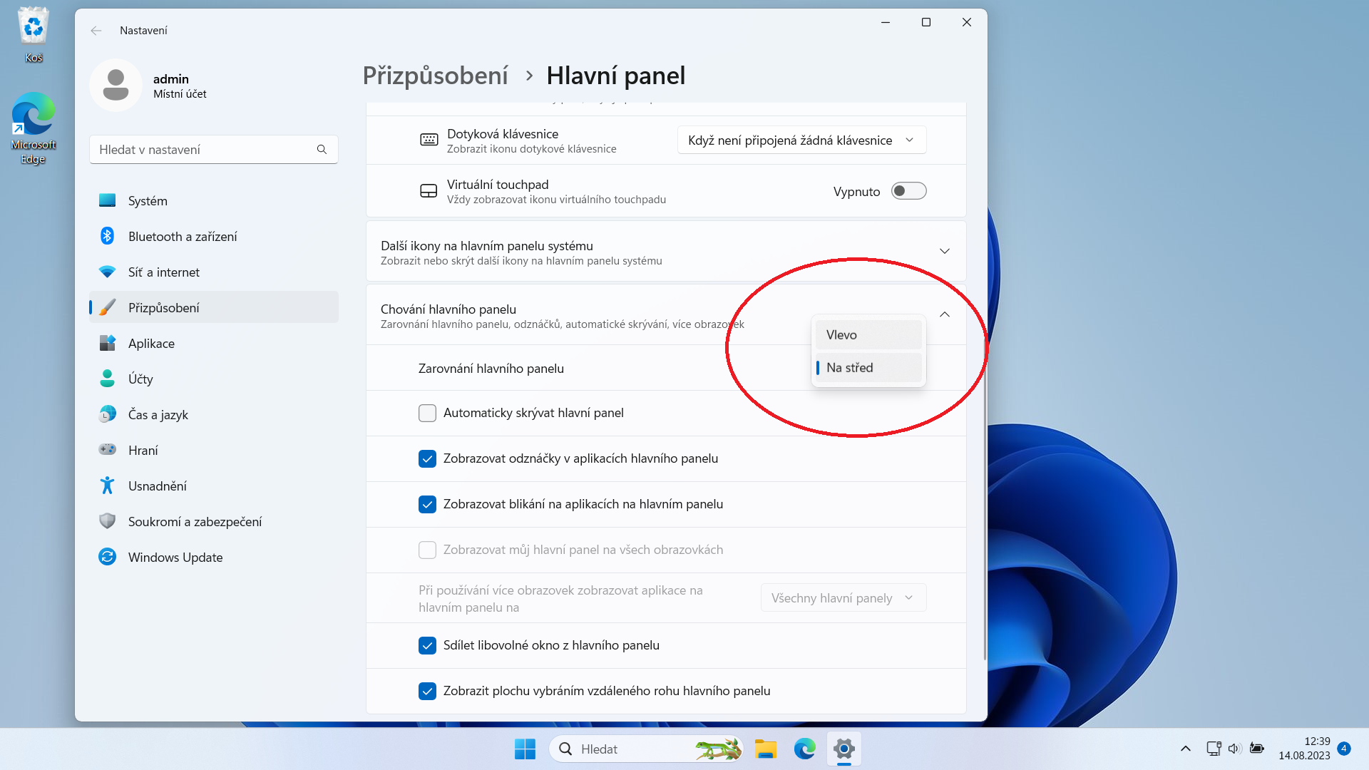 Konzervativnímu uživateli je vhodné nová Windows trošku přizpůsobit. Vypnout na hlavním panelu (to je ten spodní řádek) položky: Zobrazení úkolů, Widgety a Chat. Přesunout tlačítko Start doleva, a vložit na plochu známé zástupce Tento počítač a Ovládací panely.